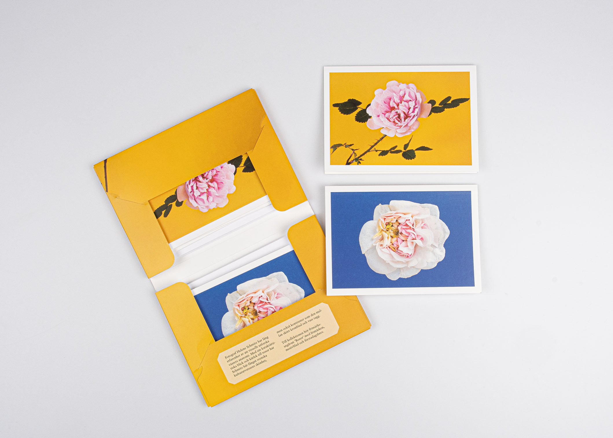 Kortask med 8 A6-kort och C6-kuvert, med två olika kortmotiv av rosor.